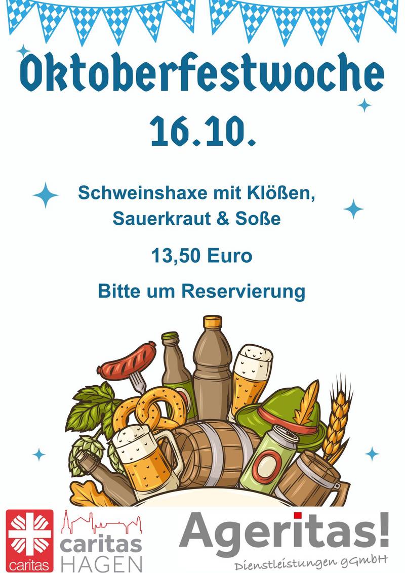 Am 16.10 gibt es ein besonderes Highlight: Schweinshaxe mit Klößen, Sauerkraut und Soße für nur 13,50 Euro. Bitte reservieren Sie rechtzeitig, damit wir Ihnen einen Platz sichern können!